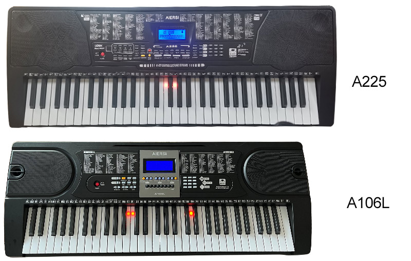 Aiersi have 2 hot sale Lighting key 61 Notes Electronic Organ . most customers always ask same questions what’s difference